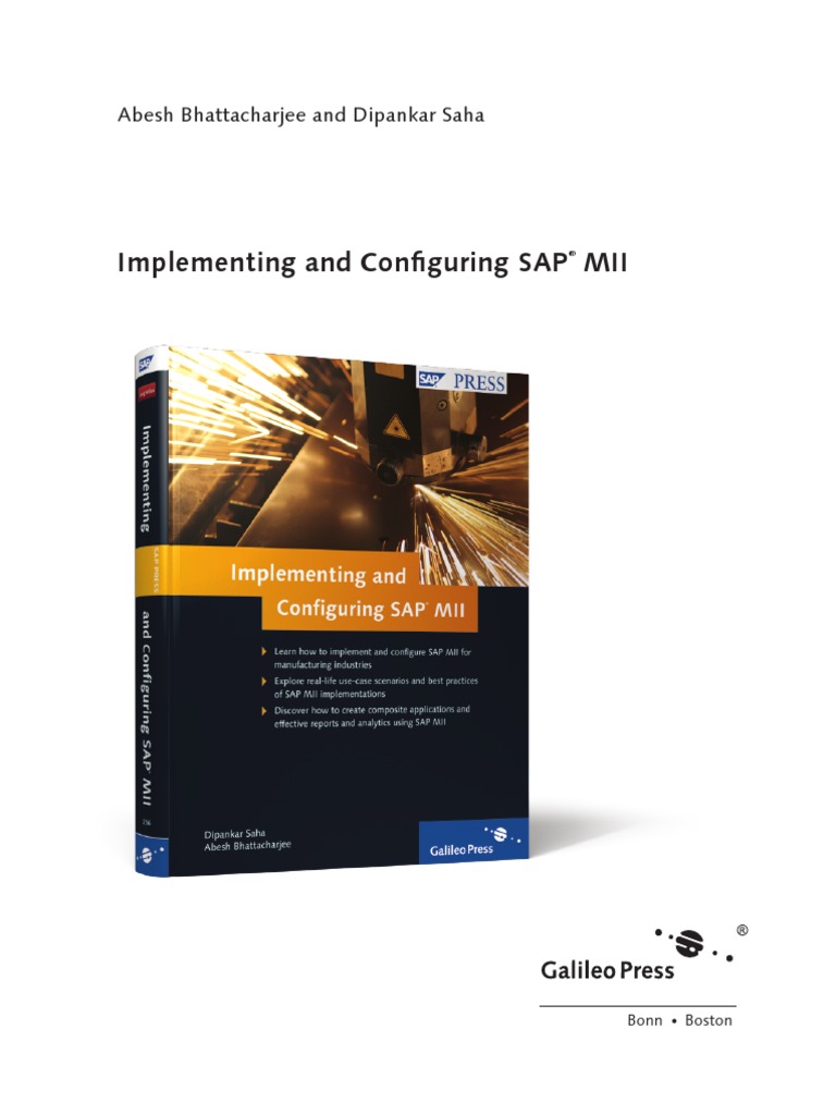 SAP MII: A New Composition Platform for Manufacturing Integration and Analytics. SAP MII as a Manufacturing Intelligence Platform. Managing Manufacturing Plant Floor Integration with SAP MII.