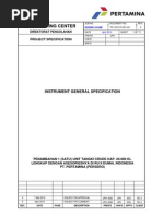 ITEM SCOPE OF THIS DOCUMENT PURPOSE OF INSTRUMENTATION Standards And Specifications 3.6.3.1 Project Specifications 3.6.3.2 Codes and standards INSTRUMENTATION SYSTEM PHILOSOPHY 3.6.4.1 Instrument philosophy 3.6.4.2 Instrument power system philosophy 3.6.4.3 Instrument earthing system philosophy 3.6.4.4 Equipment protection philosophy 3.6.4.5 Instrument material selection philosophy 3.6.4.6 Instrument installation philosophy 3.6.4.7 Instrument inspection & testing philosophy 3.6.4.8 Instrument spares philosophy 3.6.4.9 Philosophy for future facilities BULK ITEM REQUIREMENT FOR INTERFACING 3.6.5.1 Instrument air header 3.6.5.2 Instrument Cables 3.6.5.3 Instrument air tubing & fittings 3.6.5.4 Junction boxes 3.6.5.5 Instrument process connections GENERAL REQUIREMENTS 3.6.6.1 Tagging and nameplates 3.6.6.2 Documentation 3.6.6.3 Review and approval 3.6.6.4 Vendor pre-qualification 3.6.6.5 Preparation for shipment 3.6.6.6 Receipt and storage Instruments & Instrumentation Systems Well Platform Piping Class Test And Calibration Form Pneumatic Instrument Branching Connections Form B Deviation List Form C Commissioning Spares Form D List Of One Year Spares