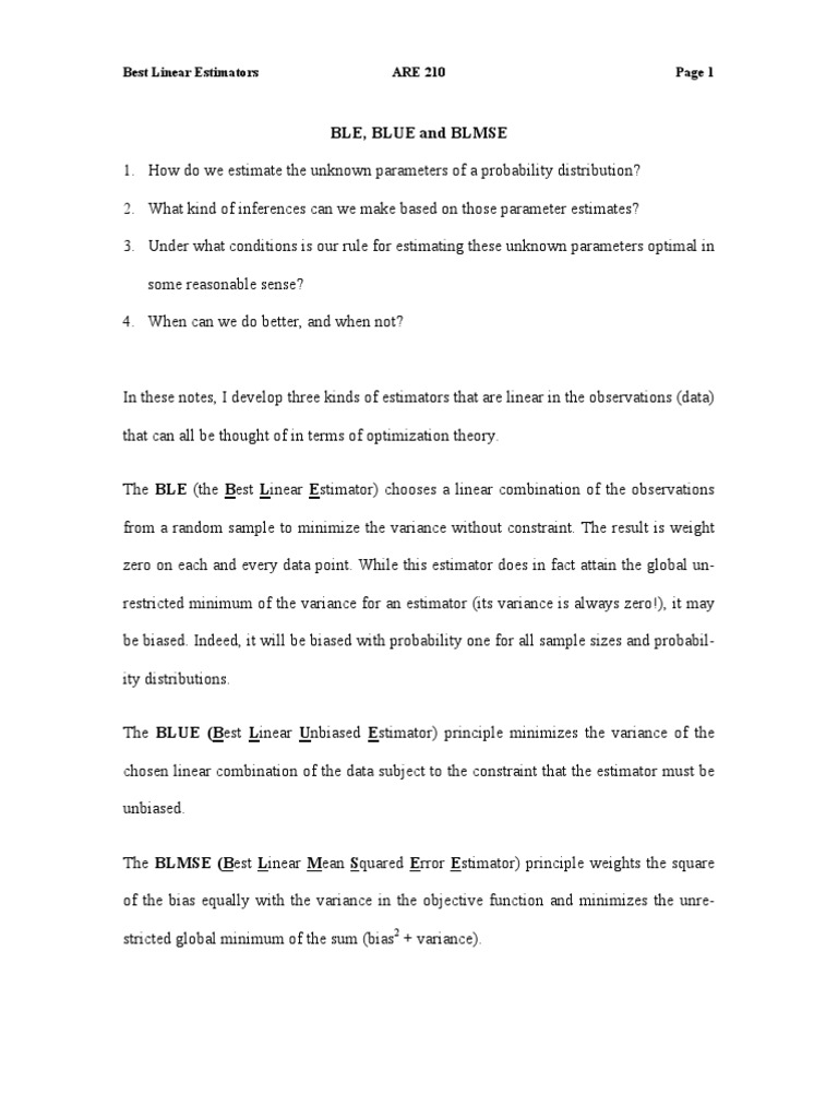 and discuss the statistical properties of two estimators that do the BLUE and the
