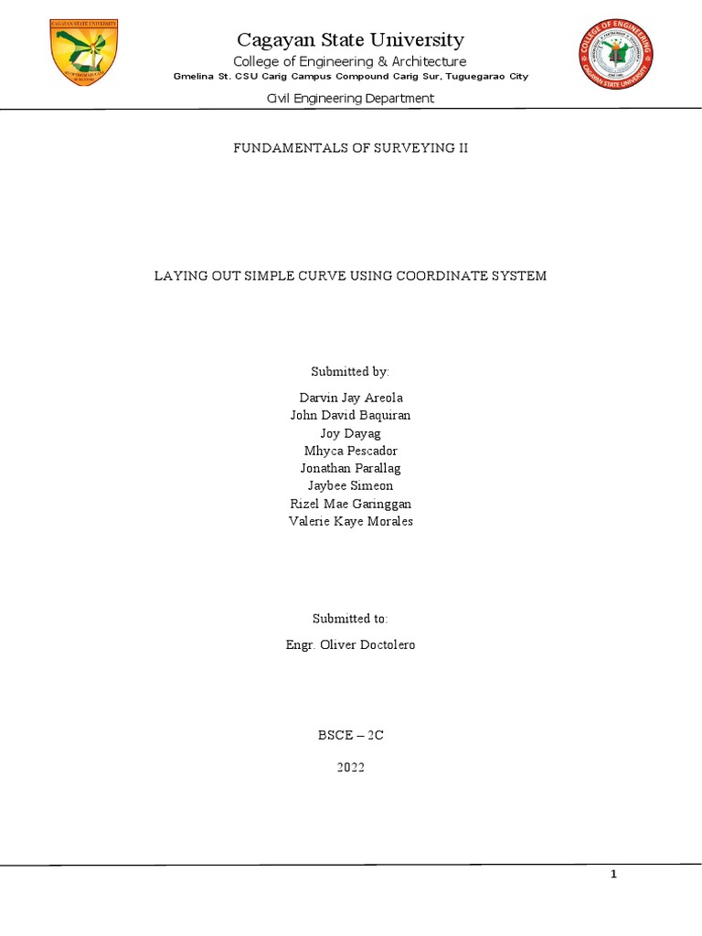 LAYING OUT SIMPLE CURVE USING COORDINATE SYSTEM