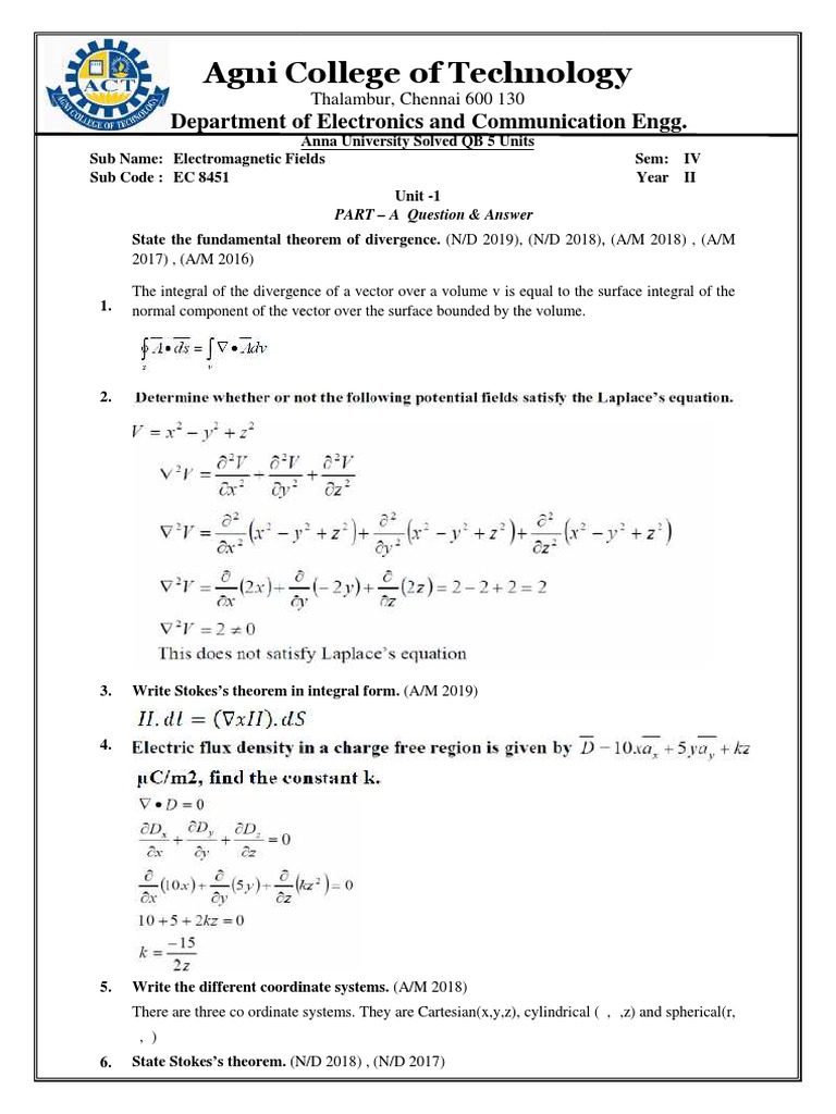 1. Write Maxwell’s equations in integral and differential form. (N/D 2019) , (A/M 2018) , (N/D 2017)