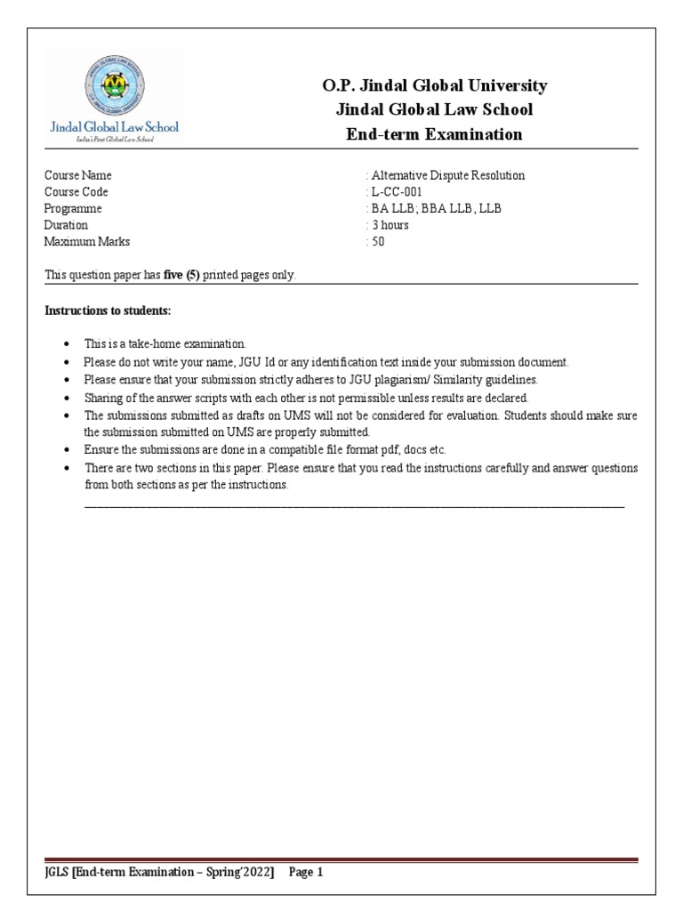 Course Name : Alternative Dispute Resolution