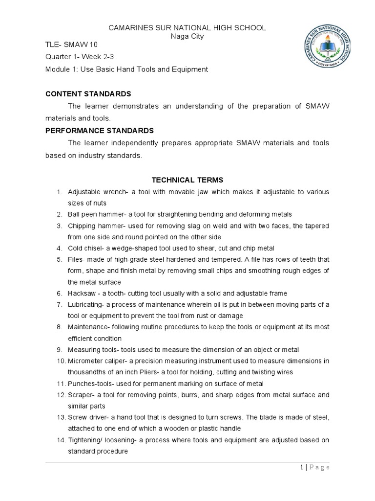 Module 1: Use Basic Hand Tools and Equipment