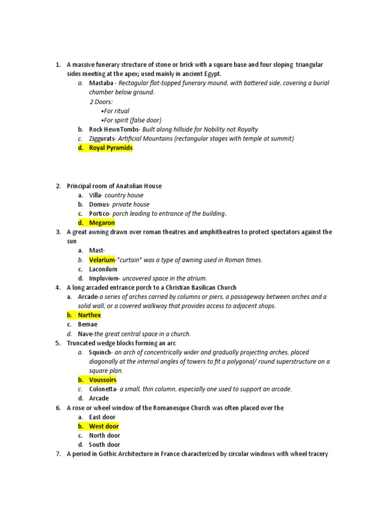 a. Mastaba - Rectagular flat-topped funerary mound, with battered side, covering a burial