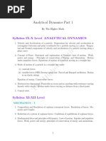 Instructor: A. K. Bajaj Room 368, Mechanical Engineering Building (Alternatively, Room ME 110) 585 Engineering Mall Purdue University West Lafayette, IN 47907-2088 (765) 494-6896 (Office) (765) 494-5737 (Secretary: TBD) email: bajaj@[Link] TEXT: Greenwood, D.T., Principles of Dynamics, Prentice Hall, 1988 (2nd Edition). REFERENCE: Huseyin, K., Vibrations and Stability of Multiple Parameter Systems, Sijthoff and Noordhoff, 1978. LECTURE NOTES: Copies of the MS PowerPoints used for the course will be available from the Boiler Copy Shop in Purdue Memorial Union, and at the course website. PREREQUISITES: Sophomore level course in dynamics covering particle kinematics and dynamics, planar kinematics and kinetics of rigid bodies; Vector calculus and matrix theory, ordinary differential equations. GRADING: Homework Midterm Exam Final Exam