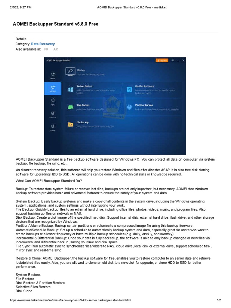 2/5/22, 9:27 PM AOMEI Backupper Standard v6.8.0 Free - mediaket