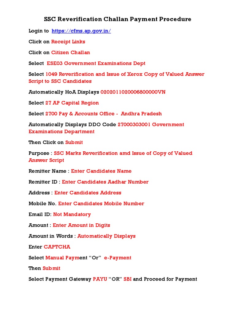 SSC Reverification Challan Payment Procedure