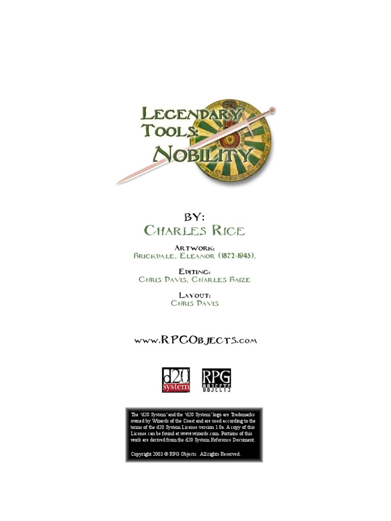 Legendary Tools: Nobility Copyright 2004, RPGObjects; Author Charles