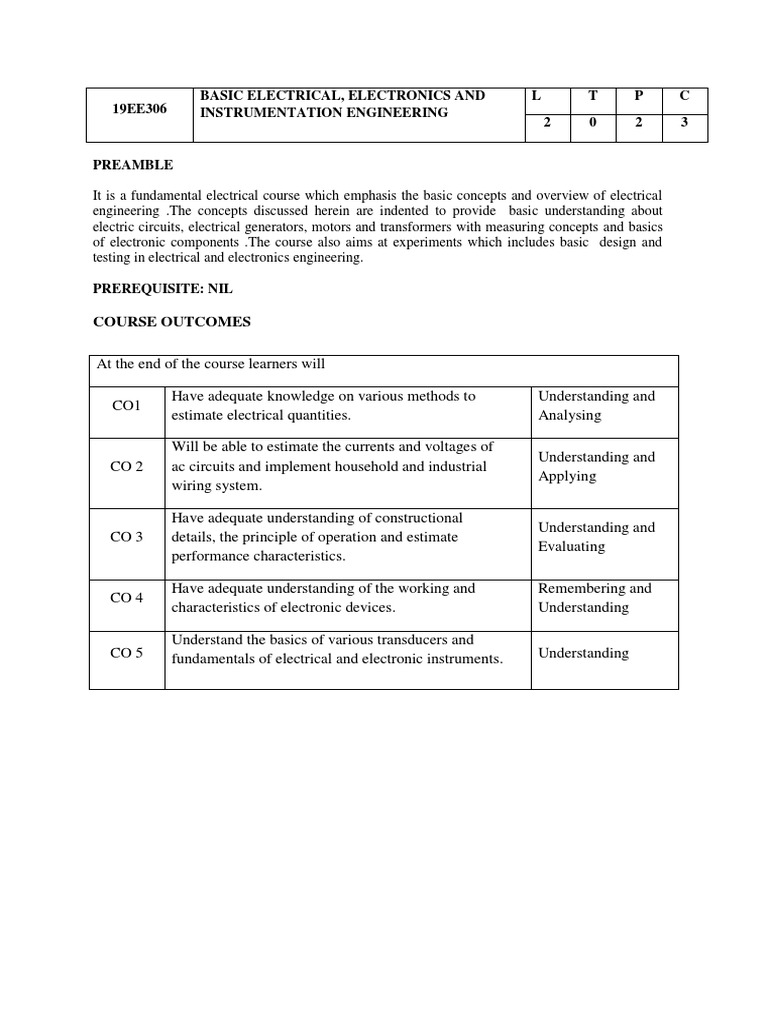CO 5 fundamentals of electrical and electronic instruments. Understanding