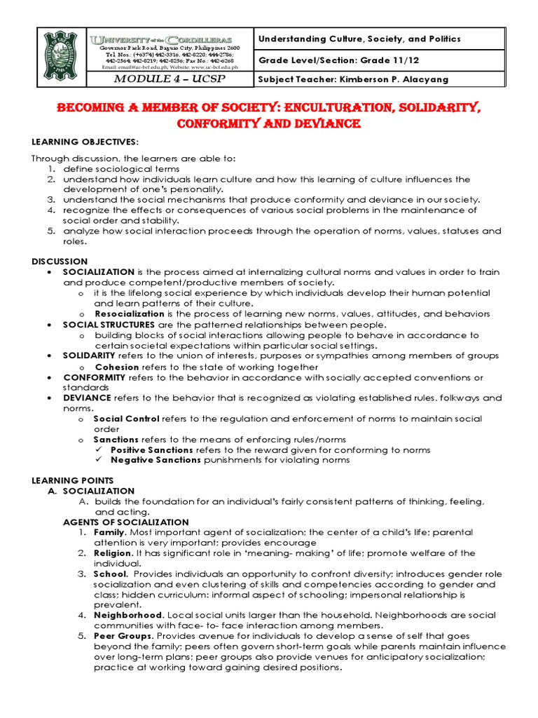 MODULE 4 – UCSP Subject Teacher: Kimberson P. Alacyang