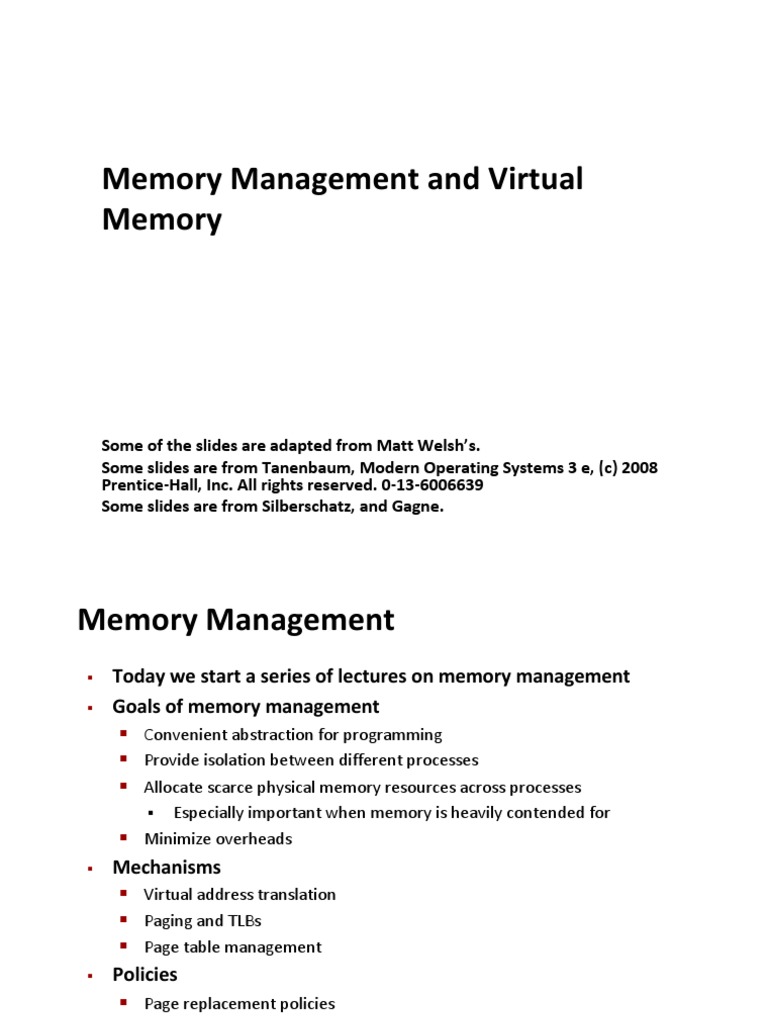§ When a process accesses a virtual address, the MMU hardware translates the virtual address