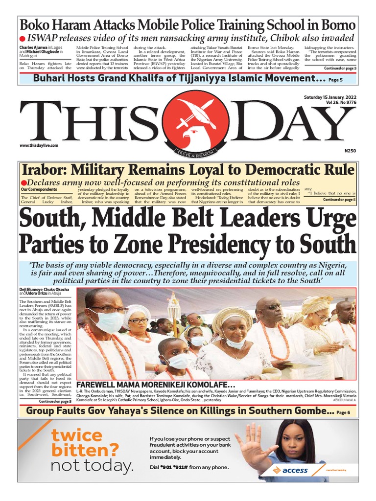 38 THISDAY, THE SATURDAY NEWSPAPER JANUARY 15, 2022