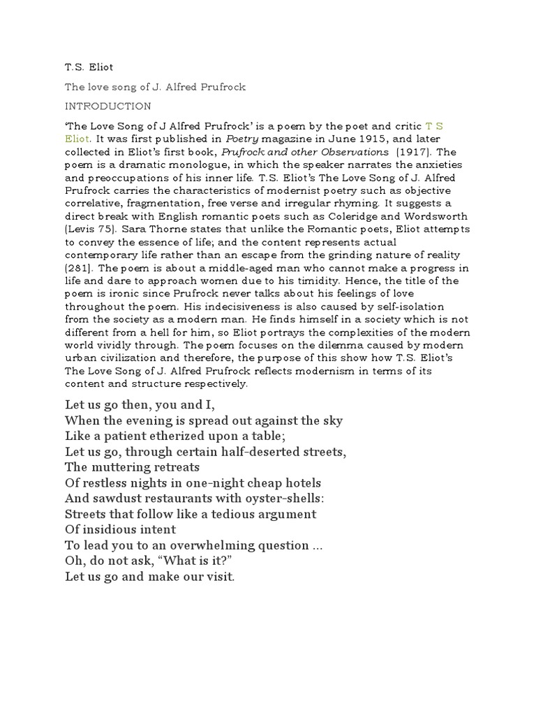 ‘The Love Song of J Alfred Prufrock’ is a poem by the poet and critic T S