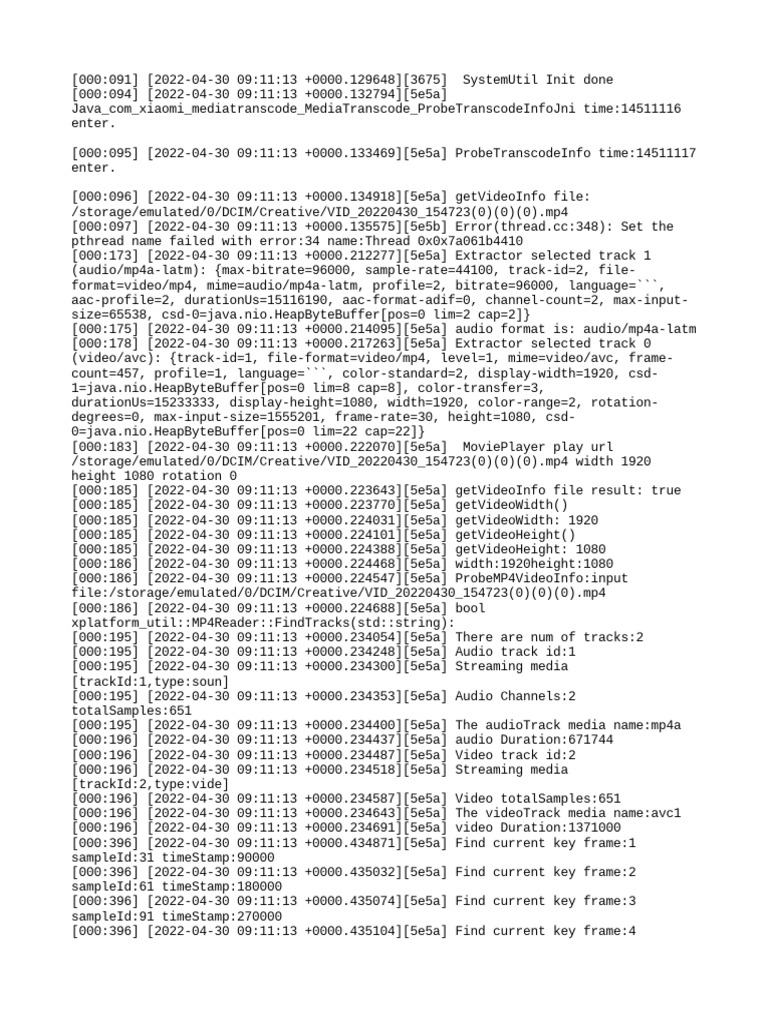 [000:196] [2022-04-30 09:11:13 +0000.234643][5e5a] The videoTrack media name:avc1