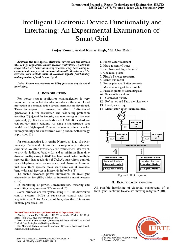 controlling many types of IED are used [9]. All possible interfacing of electrical components of an