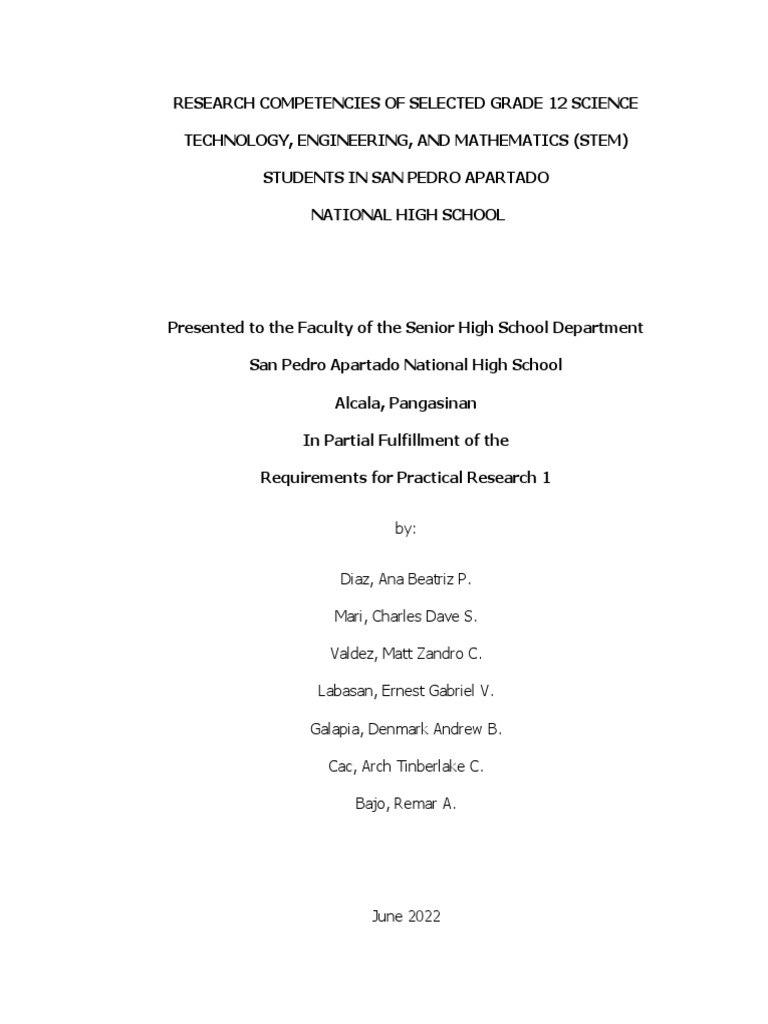 Project are the four (4) research topics for Science, Technology, Engineering,