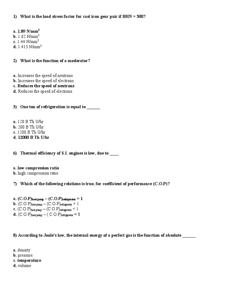 8) According to Joule's law, the internal energy of a perfect gas is the function of absolute ______