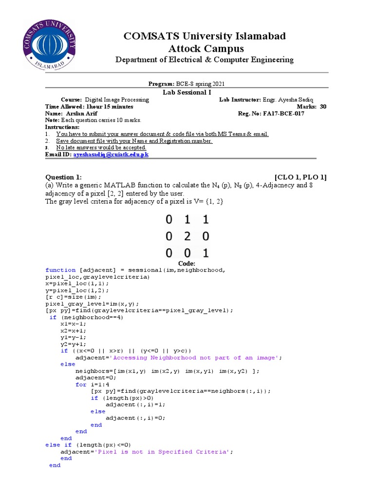 Course: Digital Image Processing Lab Instructor: Engr. Ayesha Sadiq
