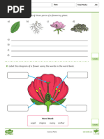 The document is a flow chart for classifying different types of plants. It provides a series of yes or no questions to sort plants based on characteristics like whether they have petals, thorns, berries/fruits, spiky or long thin leaves. The flow chart can be used to categorize example plant leaves or types of plants.