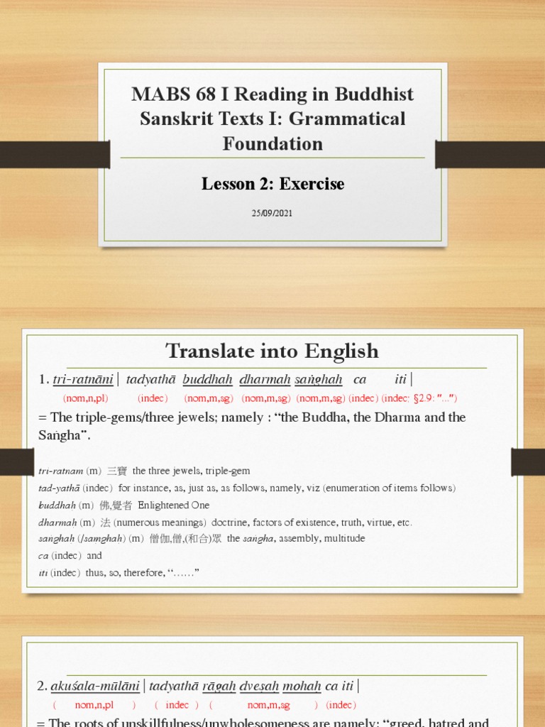 1. tri-ratnāni | tadyathā buddhaḥ dharmaḥ saṅghaḥ ca iti |