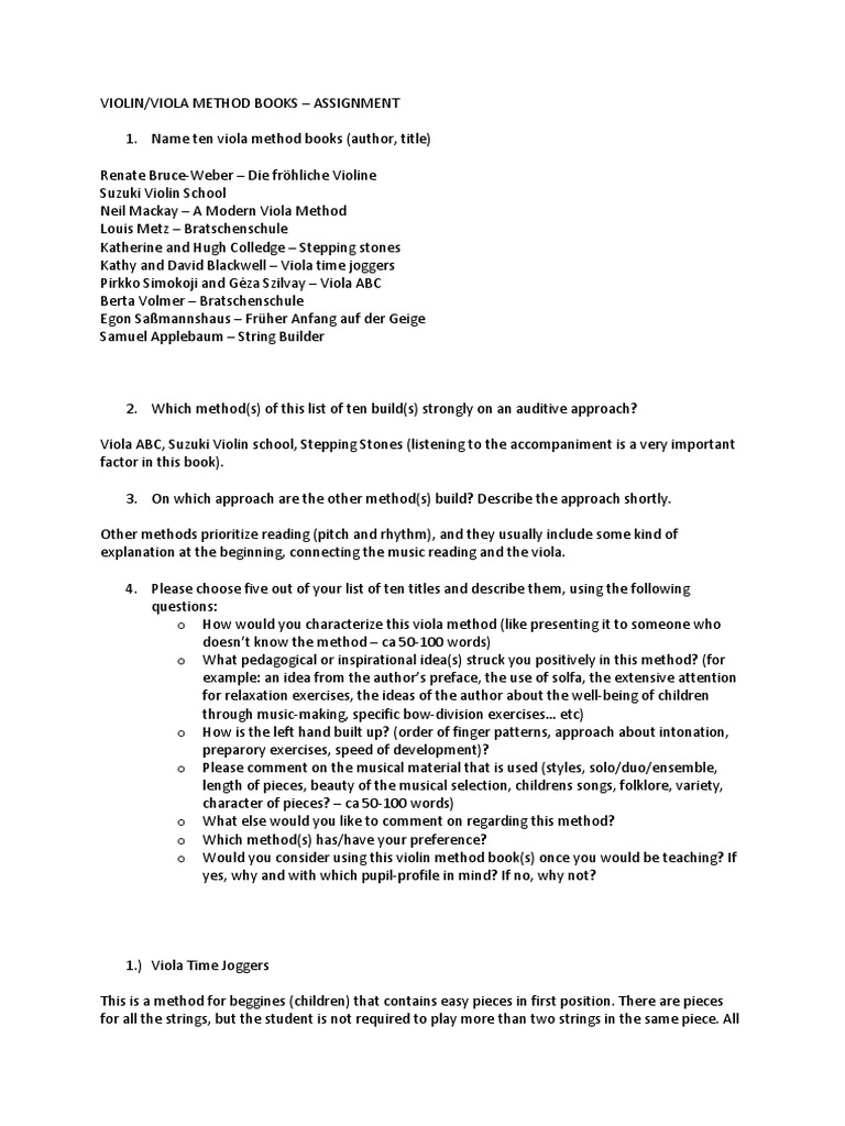 VIOLIN/VIOLA METHOD BOOKS – ASSIGNMENT