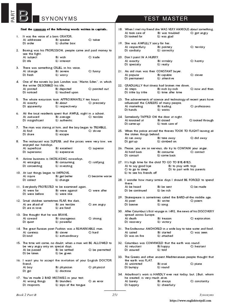 A) superficial B) excellent C) superior 26. Please, you are so nervous, do try to CONTAIN your anger.