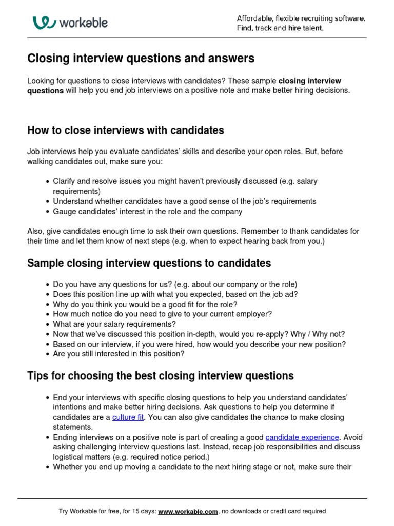 questions will help you end job interviews on a positive note and make better hiring decisions.