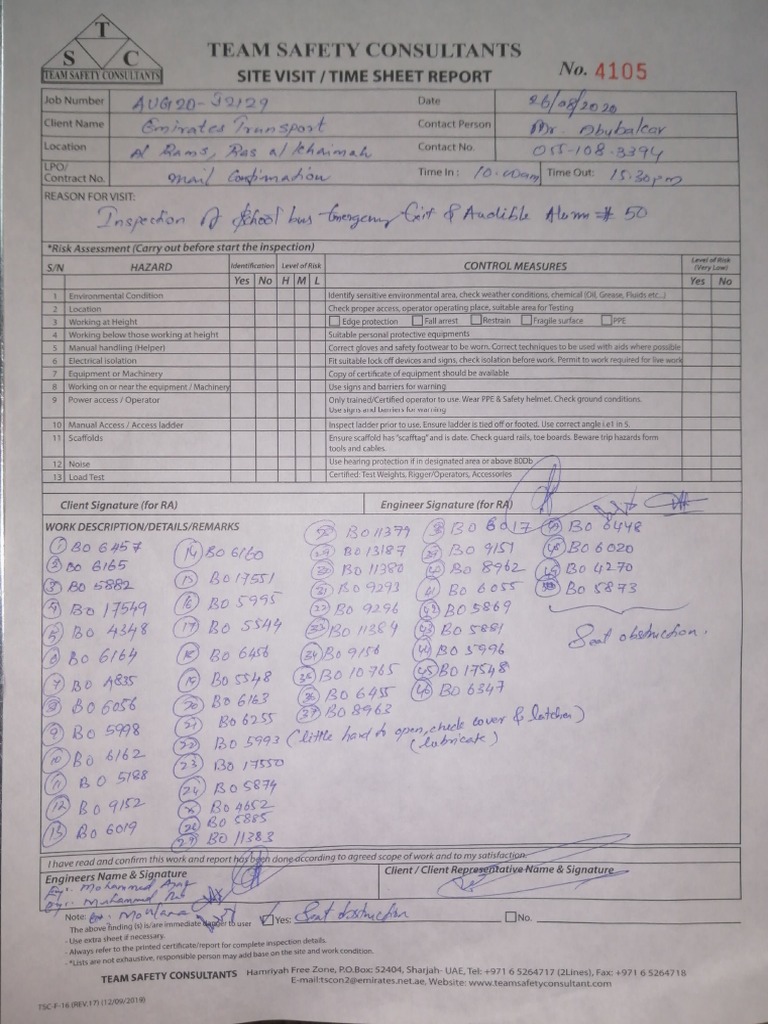 TEAM SARETYCONSULTANIS SITE VISIT/TIME SHEET REPORT