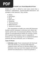 sharps and potentially infectious health care waste, including the types