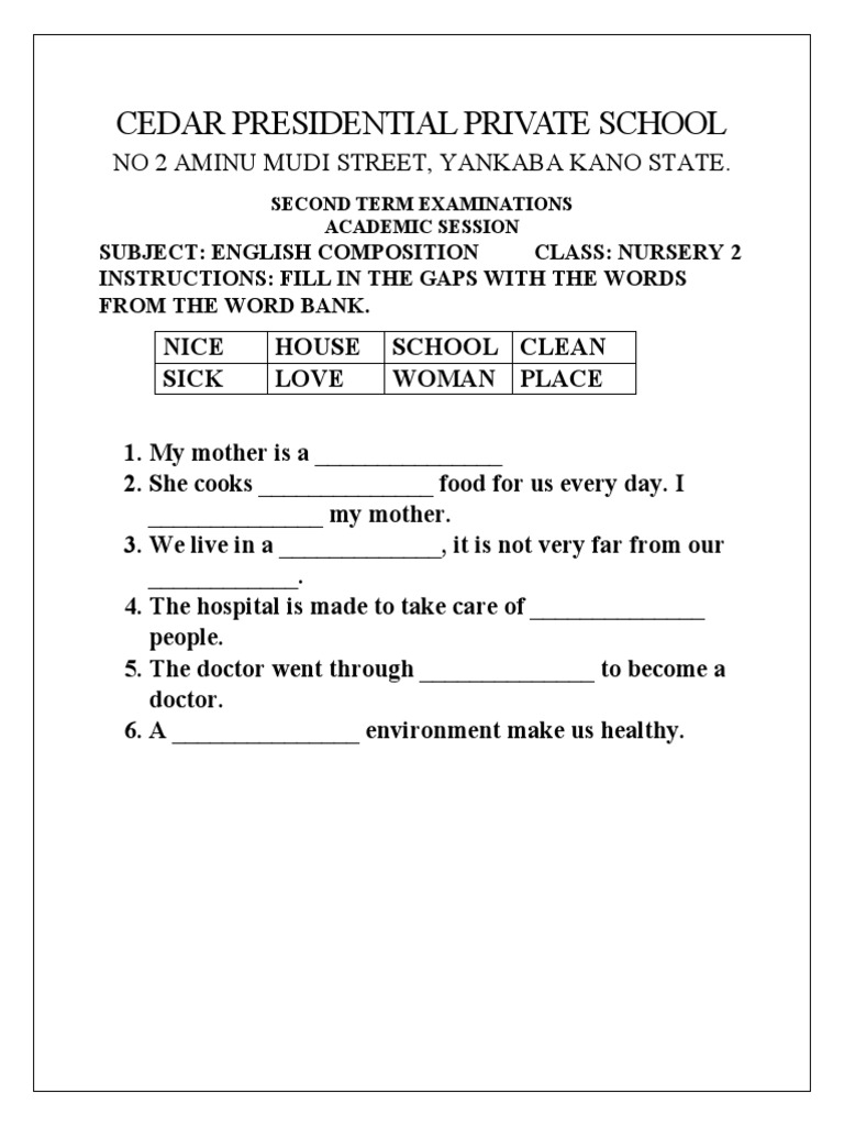 SUBJECT: ENGLISH COMPOSITION CLASS: NURSERY 2