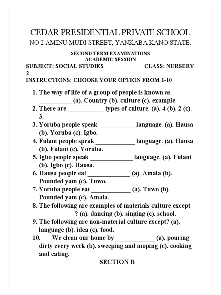 SUBJECT: SOCIAL STUDIES CLASS: NURSERY