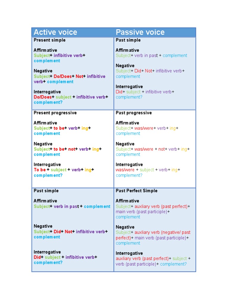 Subject+ auxliary verb (negative/ past perfect)+ main verb (past participle)+