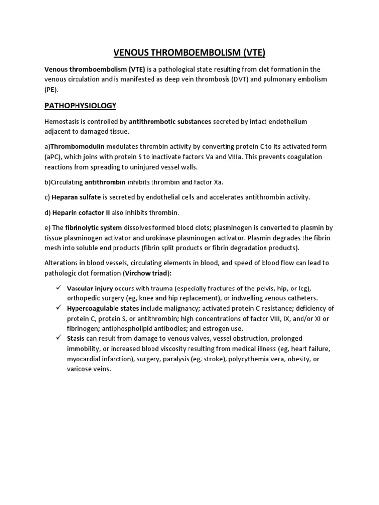 Venous thromboembolism (VTE) is a pathological state resulting from clot formation in the