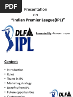 IPL is a professional Twenty20 cricket league created and promoted by the BCCI and backed by the