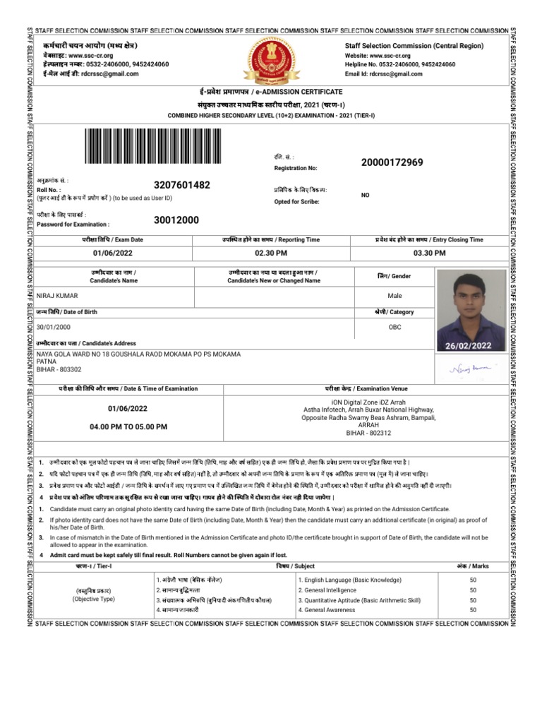 3. In case of mismatch in the Date of Birth mentioned in the Admission Certificate and photo ID/the certificate brought in support of Date of Birth, the candidate will not be