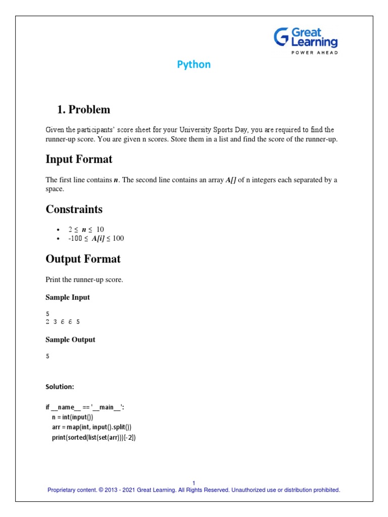 runner-up score. You are given n scores. Store them in a list and find the score of the runner-up.