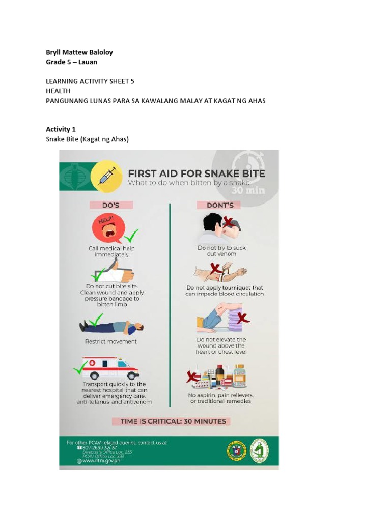 PANGUNANG LUNAS PARA SA KAWALANG MALAY AT KAGAT NG AHAS
