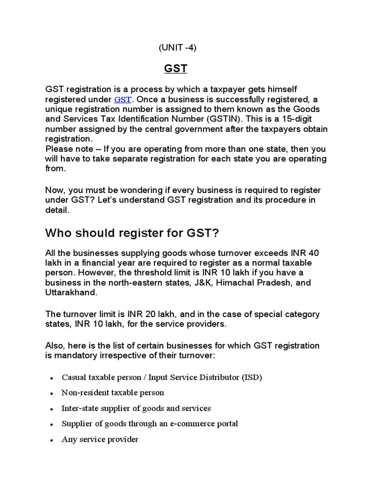 and above would be required to qualify for registration under GST.