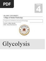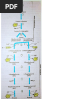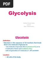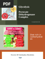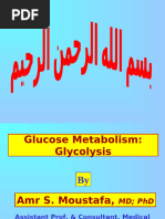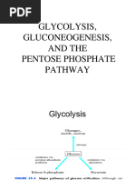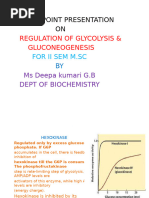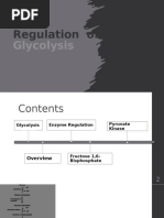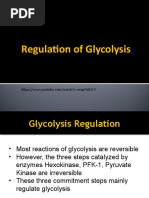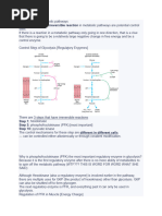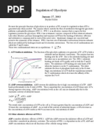 The reactions catalyzed by hexokinase, PFK-1 and PK all proceed with a relatively large free energy decrease. These non-equilibrium reactions of glycolysis would be ideal candidates for regulation of the flux through glycolysis. Indeed, in vitro studies have shown all three enzymes to be allosterically controlled. Regulation of hexokinase, however, is not the major control point in glycolysis. This is due to the fact that large amounts of G6P are derived from the breakdown of glycogen (the predominant mechanism of carbohydrate entry into glycolysis in skeletal muscle) and, therefore, the hexokinase reaction is not necessary. Regulation of PK is important for reversing glycolysis when ATP is high in order to activate gluconeogenesis. As such this enzyme catalyzed reaction is not a major control point in glycolysis. The rate limiting step in glycolysis is the reaction catalyzed by PFK-1. PFK-1 is a tetrameric enzyme that exist in two conformational states termed R and T that are in equilibrium. ATP is both a substrate and an allosteric inhibitor of PFK-1. Each subunit has two ATP binding sites, a substrate site and an inhibitor site. The substrate site binds ATP equally well when the tetramer is in either conformation. The inhibitor site binds ATP essentially only when the enzyme is in the T state. F6P is the other substrate for PFK-1 and it also binds preferentially to the R state enzyme. At high concentrations of ATP, the inhibitor site becomes occupied and shifting the equilibrium of PFK-1 conformation to that of the T state decreasing PFK-1's ability to bind F6P. The inhibition of PFK-1 by ATP is overcome by AMP which binds to the R state of the enzyme and, therefore, stabilizes the conformation of the enzyme capable of binding F6P. The most important allosteric regulator of both glycolysis and gluconeogenesis is fructose 2,6-bisphosphate, F2,6BP, which is not an intermediate in glycolysis or in gluconeogenesis.