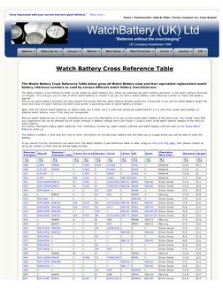‘The Watch Battery Cross Reference low gives all Watch Battery sizes and thelr equivalent replacement watch