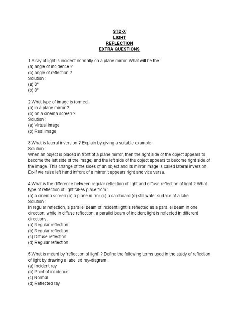 Light Reflection Extra Questions