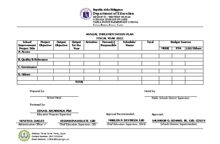Administrative Officer V Chief Education Supervisor, CID Chief Education Supervisor, SGOD Schools Division Superintendent
