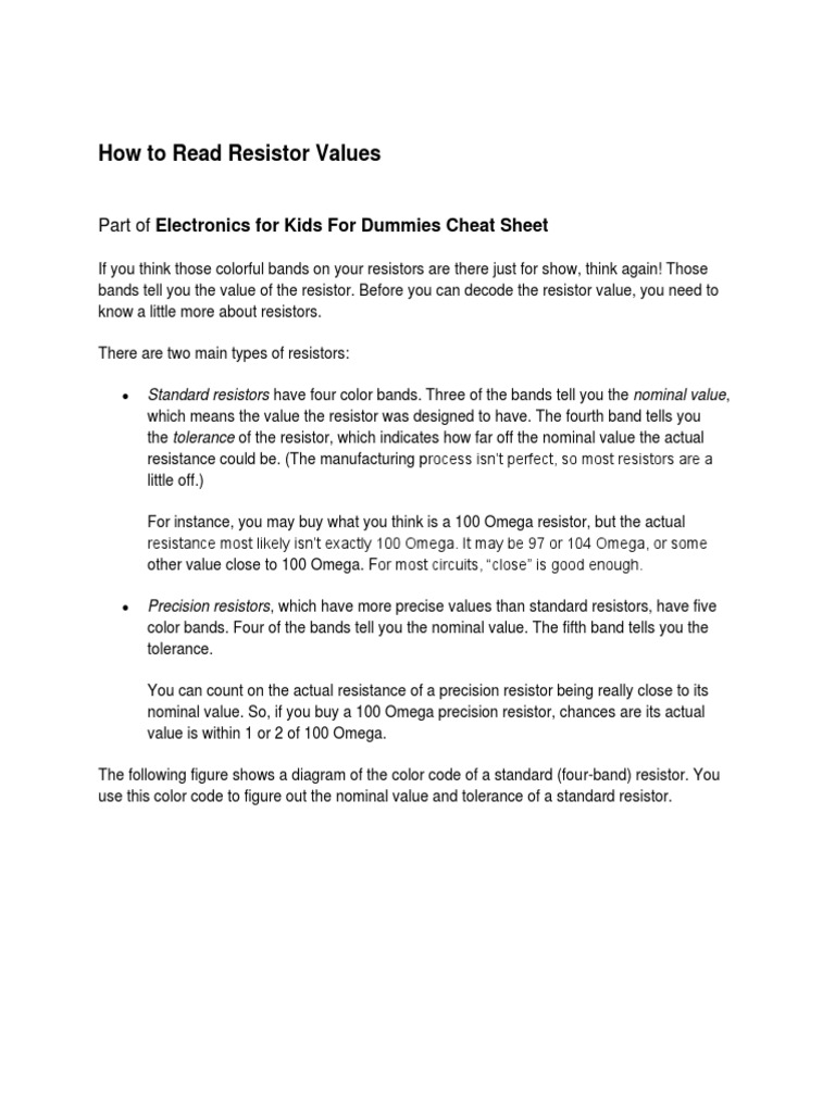 Kids For Dummies — it’s okay to use a standard resistor. For certain circuits, it’s important to
