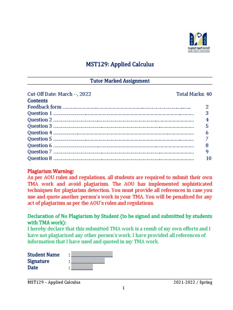 TMA work and avoid plagiarism. The AOU has implemented sophisticated