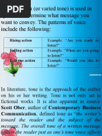 humorous, serious, or dour) while voice manifest in the particular arrangement of words and sentences in a