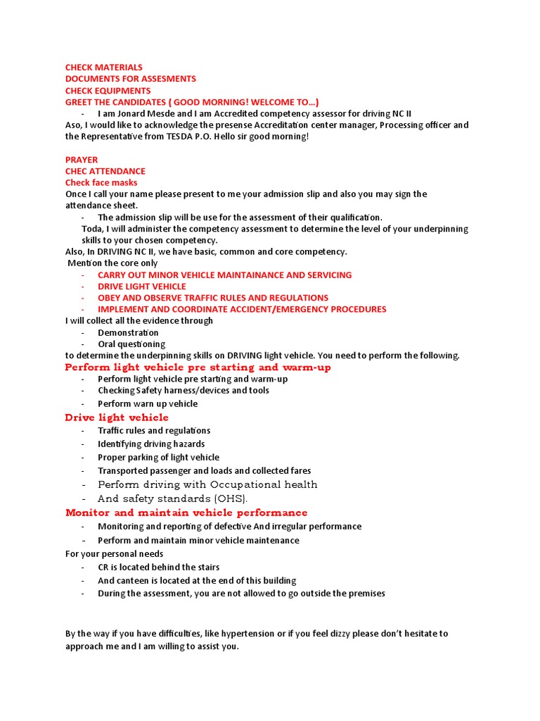 - I am Jonard Mesde and I am Accredited competency assessor for driving NC II