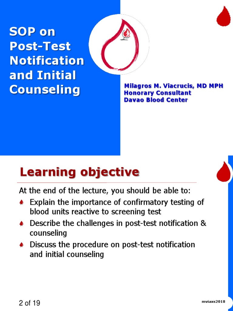 SOPs for post-donation counseling at the BTS are