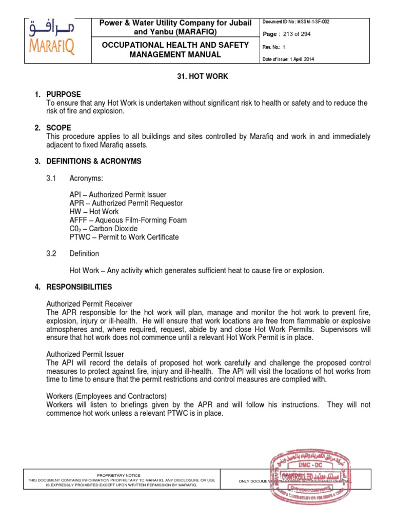 to pipelines managed by Marafiq. PTWC is not required if the hot work is conducted in the designated