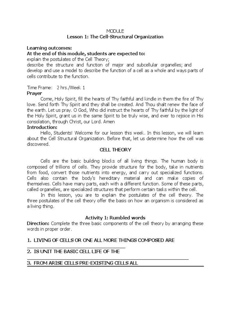 1. LIVING OF CELLS OR ONE ALL MORE THINGS COMPOSED ARE