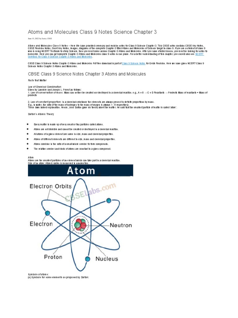 memorize. Here you can get complete Chapter 3 Atoms and Molecules class 9 notes in one place. For a better understanding of this chapter, you should also see NCERT